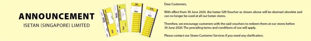 - Gift vouchers, promotion vouchers and rebate vouchers issued by Isetan Singapore
